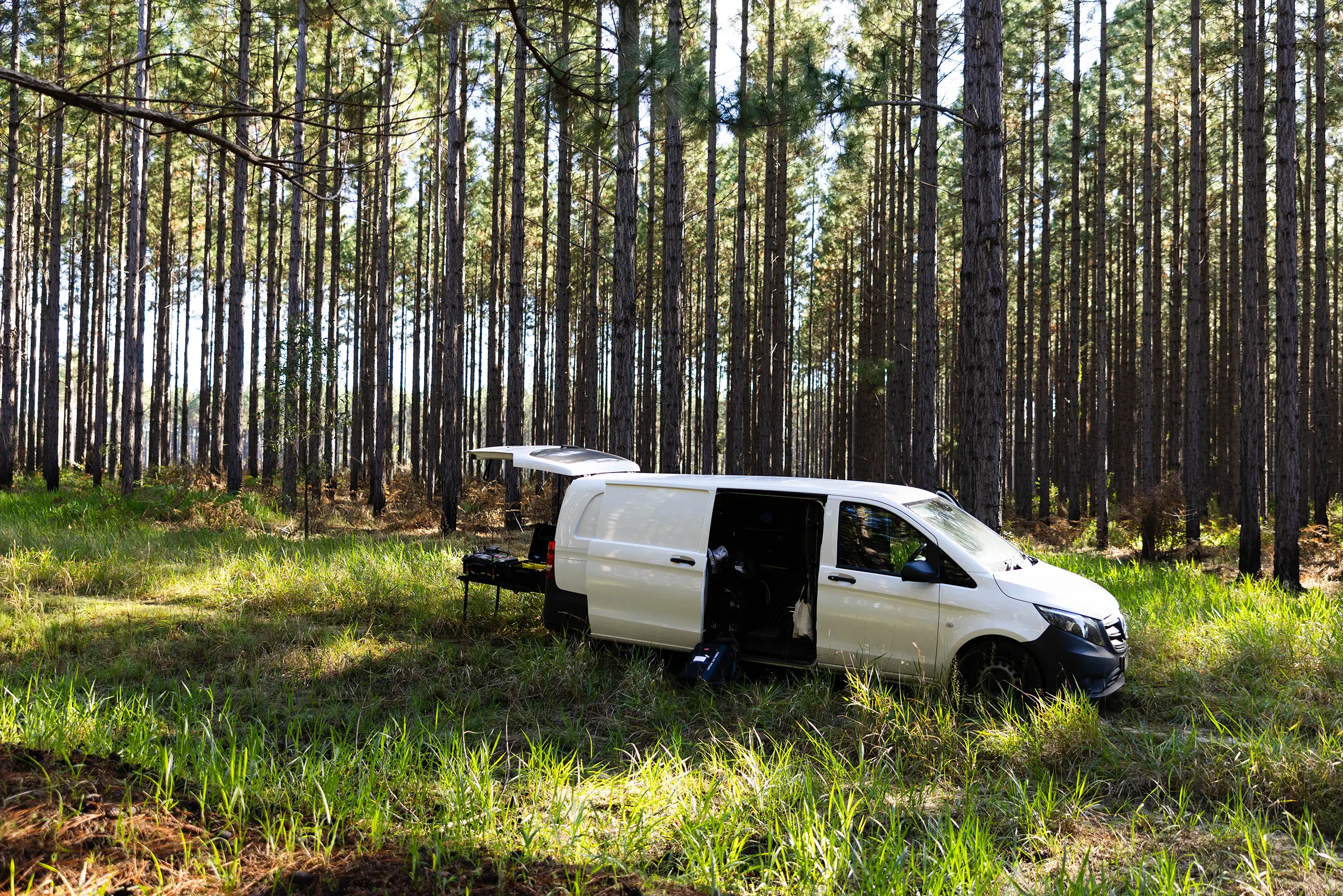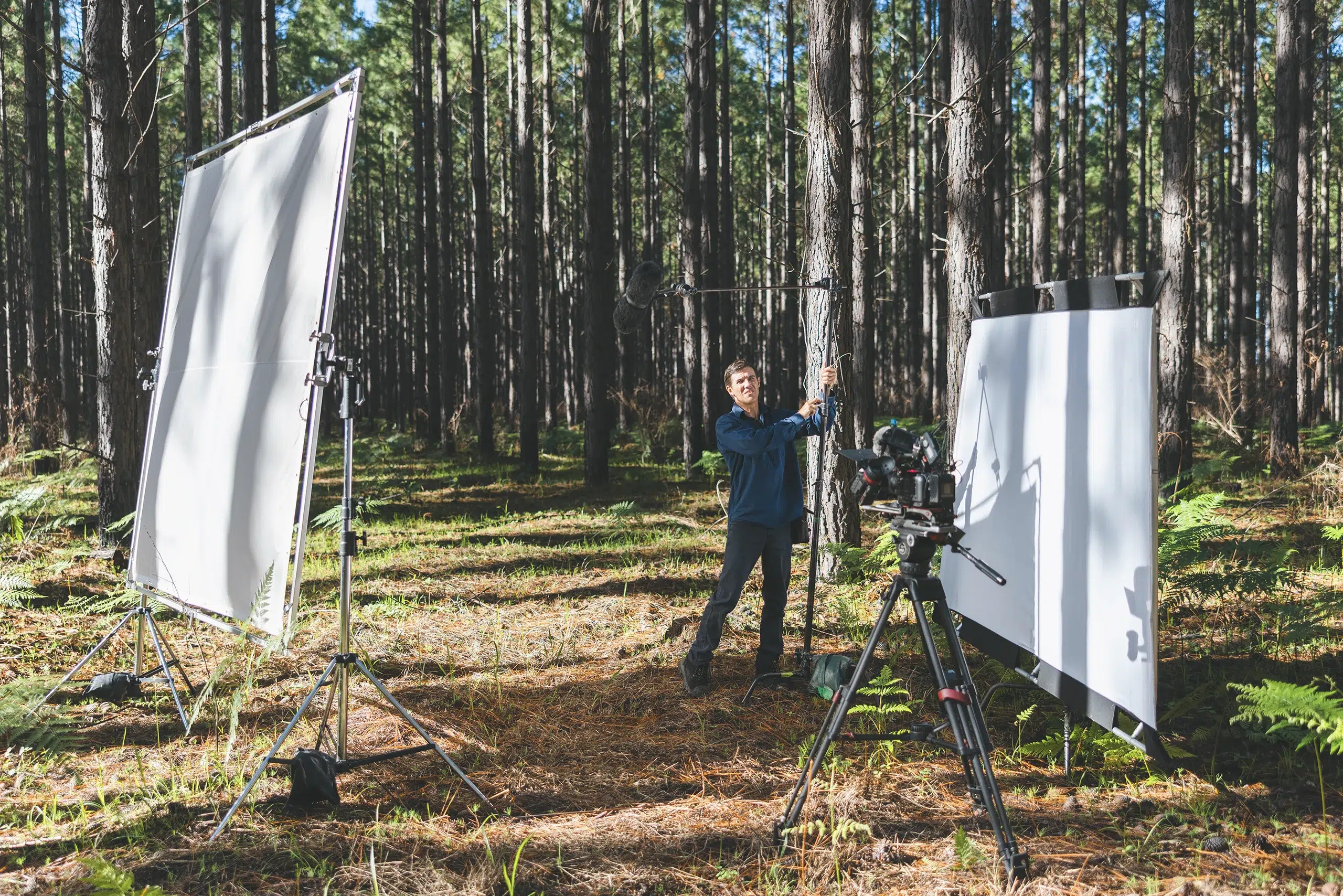 Our crew entered the sites fully equipped with high-visibility PPE and steel-cap boots, transporting camera and drone equipment deep into restricted logging areas. Filming in active forestry environments presents unique challenges, particularly around access limitations and heavy machinery in operation.