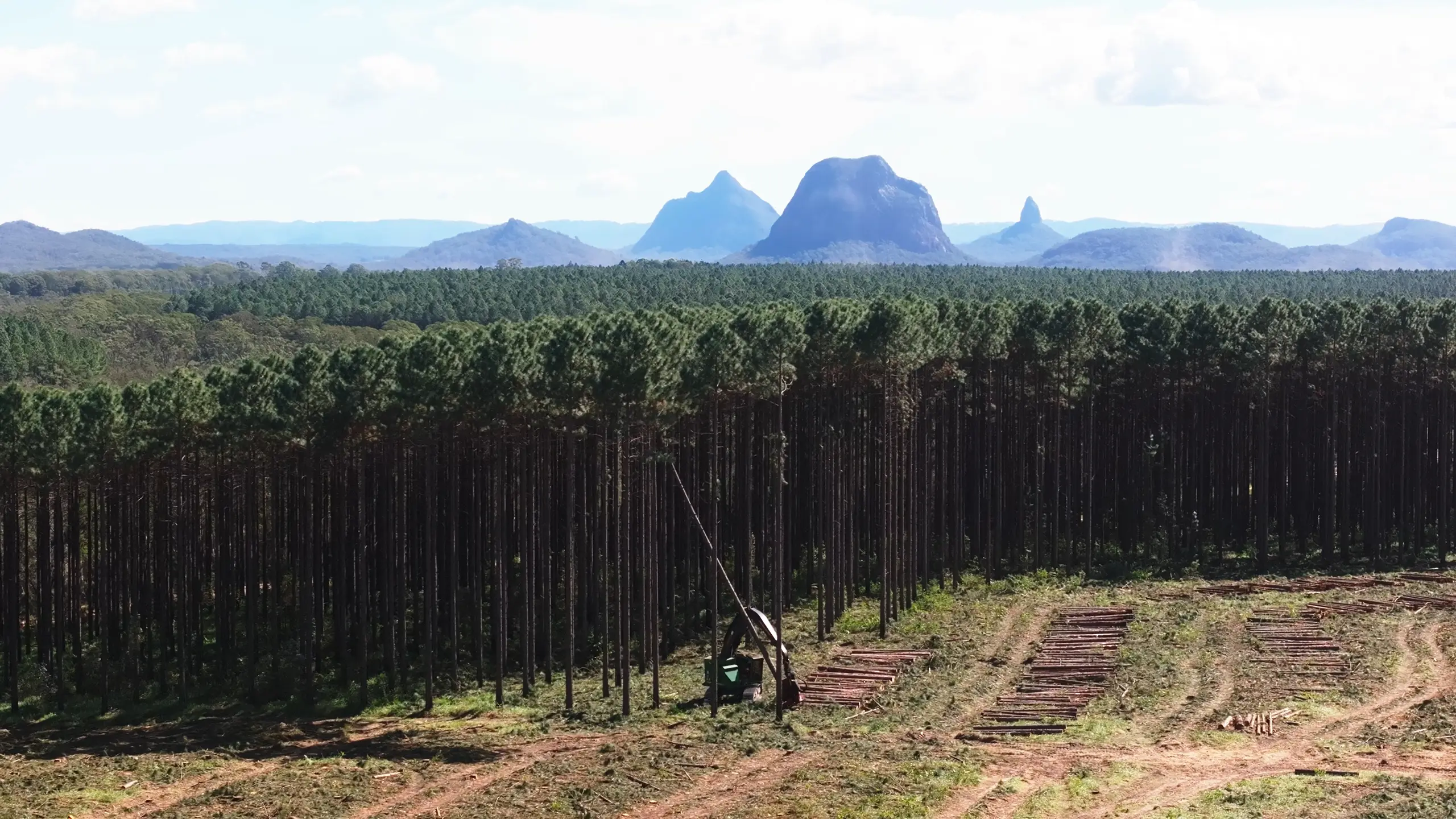 One of the most recognisable natural landmarks on the Sunshine Coast is the Glass House Mountains, surrounded by expansive working pine forests that play a vital role in Queensland’s forestry industry. These forests are managed and maintained by HQ Plantations, with a strong focus on safety, sustainability, and operational excellence.