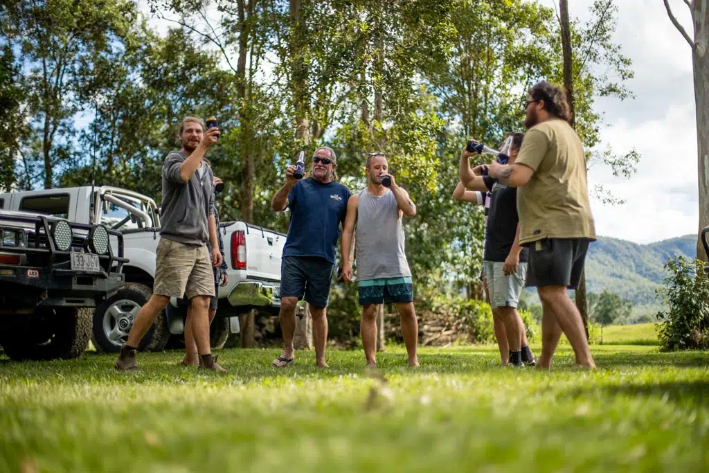 On the day of the shoot, our crew met Mullet Mods team on their family property on the Sunshine Coast. With all the rain we’ve had on the east coast, the grassy grounds by the river we had previously chosen as our location would quickly become a bottomless mud pit. This meant we only had one take to get the placement of the cars dialled as we could not drive back over our wheel tracks twice!